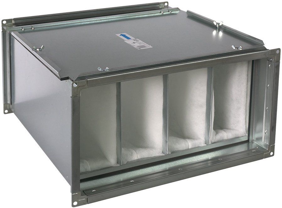 Корпус фильтр-бокса выполнен из оцинкованной стали. Крышка крепится к корпусу простыми защелками и петлями, что позволяет удобно и быстро менять фильтрующую кассету.